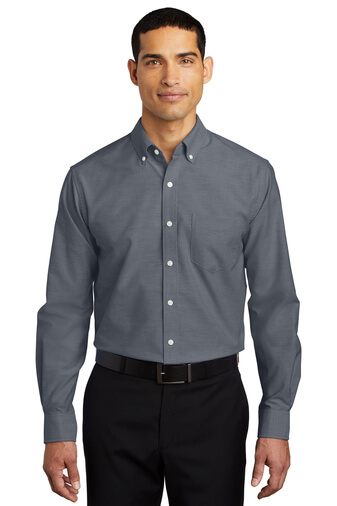 Look your best in a tried-and-true oxford that performs. Designed to resist and release stains, our SuperPro Oxford has a soft hand and a wrinkle-free finish to keep you looking neat and professional all day long.